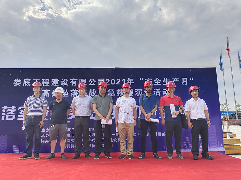 為進一步提高公司安全管理水平,規(guī)范公司安全生產(chǎn)過程的管理工作,本著"安全第一、預(yù)防為主、綜合治理"的安全管理方針。 加強建筑工地應(yīng)對突發(fā)事件的處理能力,提高全員安全意識,切實掌握應(yīng)急救援的的技能、技巧,讓員工在事故發(fā)生時將傷害減少到最低,同時為響應(yīng)“學(xué)黨史,辦實事”的精神,公司和公司黨支部特組織了一次高處墜落事故應(yīng)急救援演練活動。婁底經(jīng)開區(qū)住建局童韜先生、李愛民先生、李俊先生、雷海仁先生,建設(shè)單位現(xiàn)場負責人曾彪先生,監(jiān)理單位總監(jiān)柯又華先生,婁底工程建設(shè)有限公司副總經(jīng)理彭洪偉、顏克靈出席了本次演練活動,婁底市生態(tài)電力科技谷A區(qū)一期一標項目部全體人員,公司各在建項目負責人、關(guān)鍵崗位人員參加了此次演練活動。