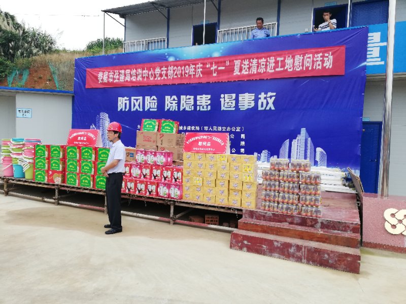 七月一日上午,市住建局(人防辦)黨委副書記李群歡書記率領(lǐng)市住建局培訓(xùn)中心黨支部全體黨員,親臨我司施工現(xiàn)場(chǎng),炎夏送清涼慰問一線的農(nóng)民工,深深地感受黨恩和領(lǐng)導(dǎo)的關(guān)心。