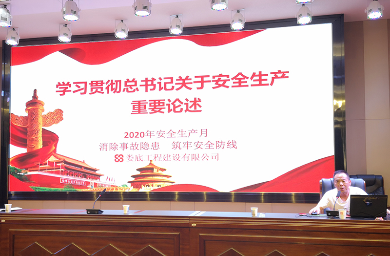 為貫徹《湖南省住房和城鄉(xiāng)建設廳關于開展2020年建筑施工“安全生產(chǎn)月”和“安全生產(chǎn)三湘行”活動的通知》(湘建建函[2020]69號)、《婁底市住房和城鄉(xiāng)建設局(市人民防空辦公室)安全生產(chǎn)委員會關于開展2020年建筑施工“安全生產(chǎn)月”活動的通知》(婁建安委發(fā)[2020]5號)要求,深入學習貫徹習近平總書記關于安全生產(chǎn)重要論述,牢固樹立安全發(fā)展理念,堅持“安全第一、預防為主、綜合治理”的安全總方針,進一步加強公司安全生產(chǎn)管理工作,營造安全生產(chǎn)良好氛圍,公司于2020年6月10日19點組織各部門和項目部人員在會議室舉行以“消除事故隱患,筑牢安全防線”為主題的“安全生產(chǎn)月”活動宣貫會。會議由總工程師李偉主持,公司總經(jīng)理胡勁、副總經(jīng)理彭洪偉、顏克靈出席了本次會議并講話。
